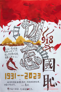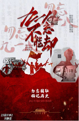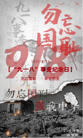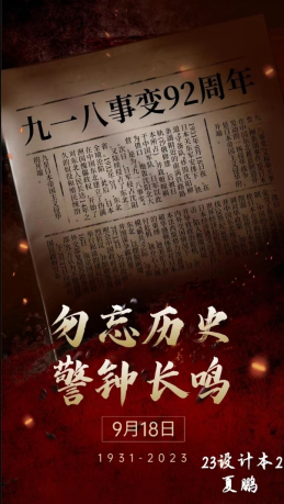 23新生夏鹏同学感叹到,今天是9月18日,我亲手制作设计这张海报意义很大。九一八事变92周年,山河虽已无恙,这段历史我们不会忘,不能忘,也不敢忘。愿以吾辈之青春,捍卫盛世之中华。
