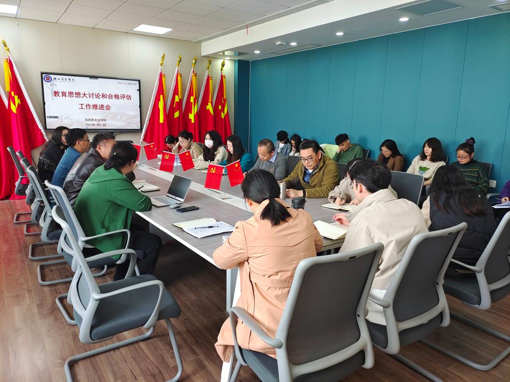 3月31日,马院举行教育思想大讨论和本科教学工作合格评估工作推进会,公司班子成员和全体教师参加会议,球王会经理孔波主持会议。