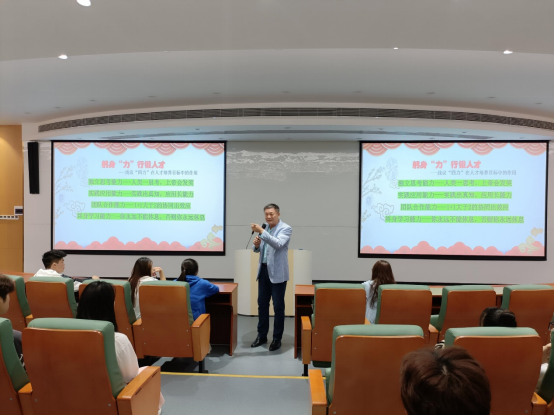 10月13日,球王会经理孔波在鸿博楼J1为来自各公司一百多名学子举行了“躬身‘力’行锻人才”为主题的生动演讲,就马院如何围绕 “四力”人才培养培养目标持续发力献计献策。