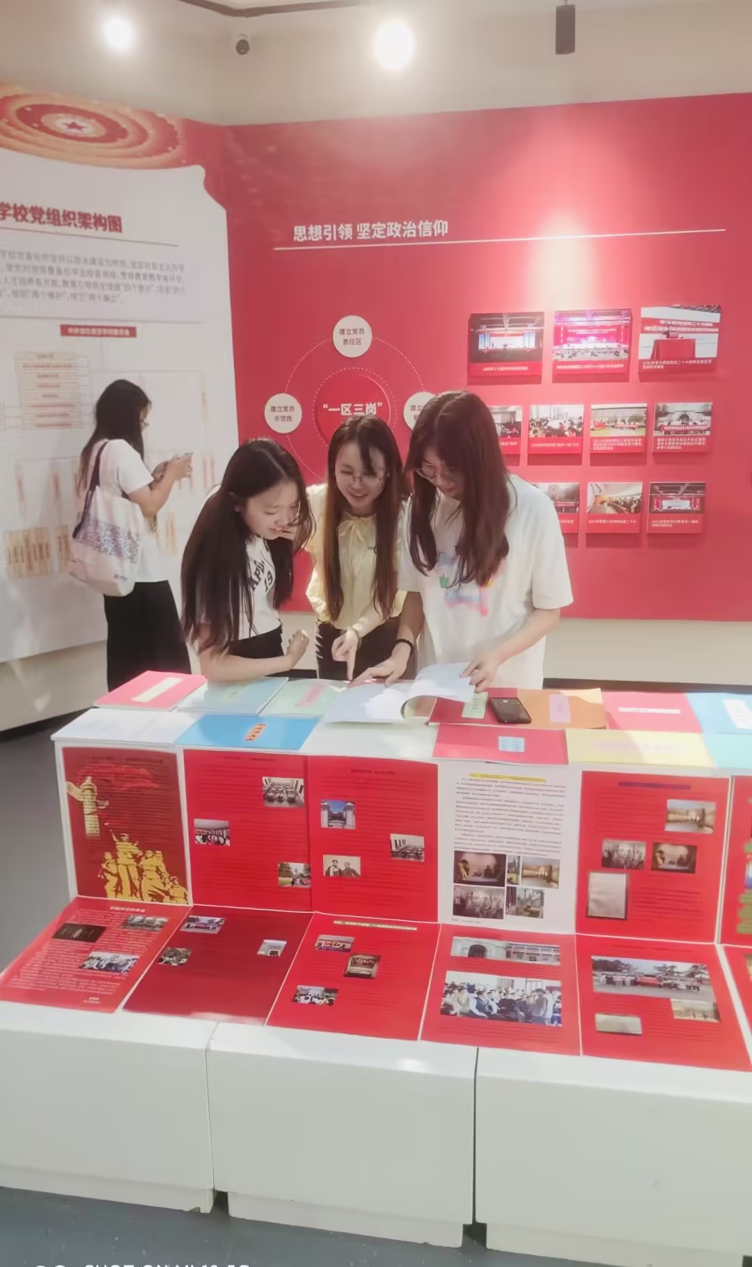 在孔波的引领下,师生们共同参观了校史馆内的思政展览。展览内容丰富,不仅展示了公司的发展历程和师生风采,还通过图文并茂的形式,生动讲述了党的历史和红色故事。师生们纷纷表示,通过参观展览,他们深刻感受到了红色文化的魅力,也更加坚定了学习马克思主义、传承红色基因的决心。